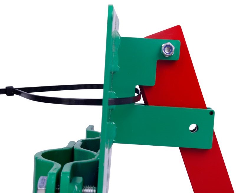 Dieser Bauzaunriegel wurde speziell für den sicheren Aufbau von Notausgängen zwischen zwei Bauzaunfeldern entwickelt. Die Konstruktion basiert auf einem stabilen Stahlgehäuse, das mittels Schelle am Bauzaun befestigt wird. Die beiden Zaunrohre werden durch den Riegel geführt und mit einem Kabelbinder verbunden. Dadurch entsteht ein verschlossenes Notausgangstor, das von außen nicht geöffnet werden kann. Das macht den Riegel zu einer effektiven Lösung für Zutrittskontrolle und Fluchtwegsicherung, besonders auf Veranstaltungsgeländen, Baustellen oder temporären Absperrbereichen.